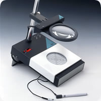 Magnifying glasses: Biconvex, 100 or 200 mm diam. 4Diopters, Magnification DINx2