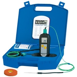 Sous Vide cooking has become more popular in professional kitchens over the past few years. New cooking methods require new temperature testing techniques. Therefore, ETI has designed a Sous Vide kit that contains a high accuracy Therma 1 thermometer, two Sous Vide needle probes (60 and 120 mm), a waterproof countdown timer, Sous Vide tape and FREE mini tub of ProbeWipes, all supplied in a FREE ABS carrying case.